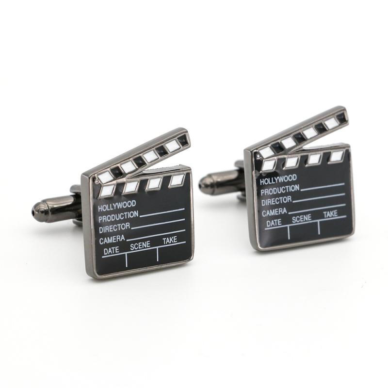 カフスボタン メンズ 男性用 フレンチスタイル ハリウッド 映画 カチンコ モチーフ 銅製 焼き付け塗装 欧米スタイル ビジネス フォーマル パーティー 結婚式 イベント おしゃれ アクセサリー ガンメタリック ブラック