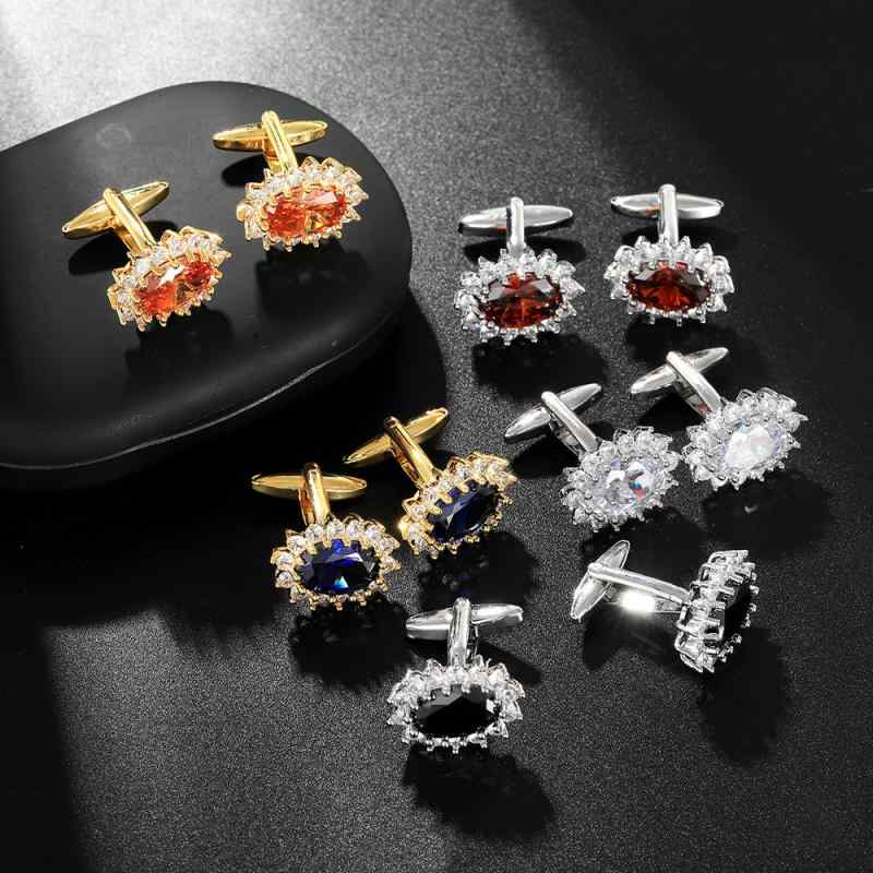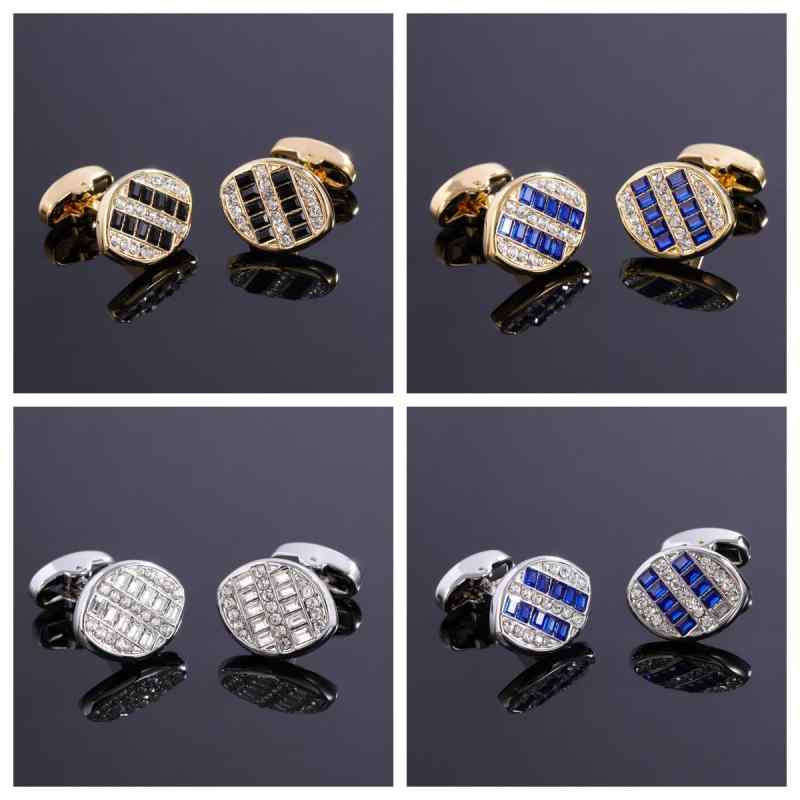 カフスボタン メンズ 電気メッキ加工 高級感 ジルコニア オーバル スーツ ビジネス Yシャツ 結婚式 パーティー フォーマル おしゃれ スタイリッシュ 多用途 オールシーズン 銅製 幾何学デザイン 多色展開(x2)