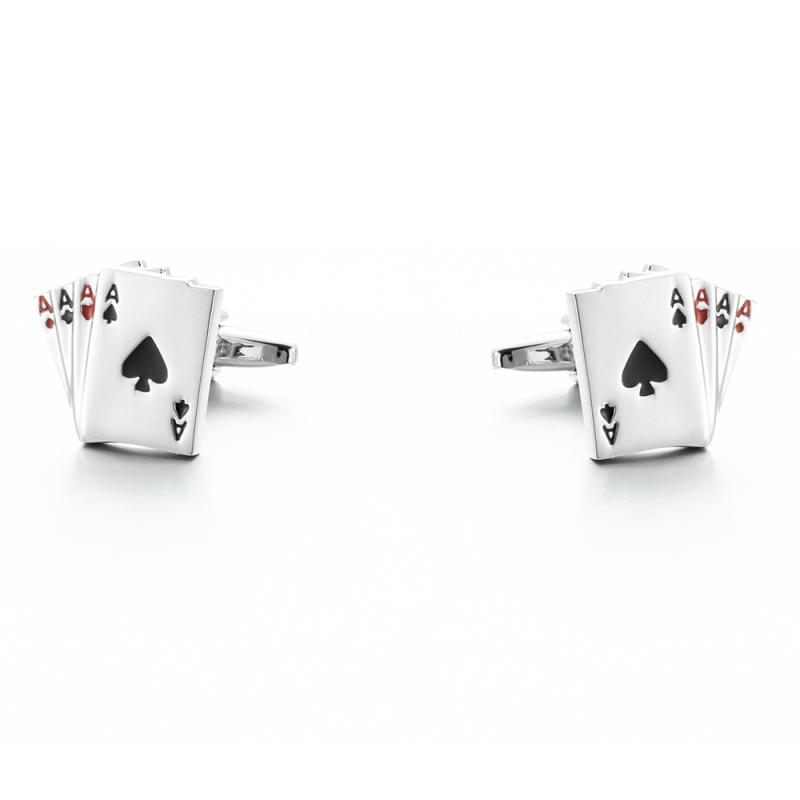 カフス メンズ トランプ柄 フレンチカフス シャツ用 ボタン ヨーロピアン 幾何学模様 クリスタル ラインストーン シルバーカラー ビジネス 結婚式 パーティー フォーマル スーツアクセサリー(x2)