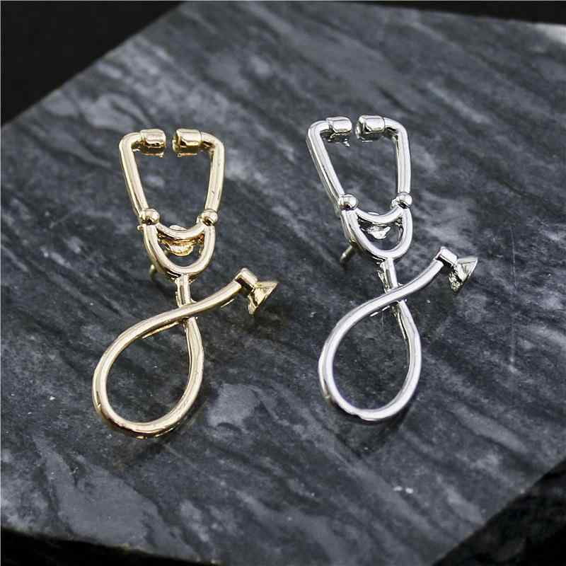 ブローチ 男女兼用 ユニーク 聴診器モチーフ キャラクターデザイン かわいい 亜鉛合金製 電気メッキ加工 ゴールド シルバー ラペルピン 襟元 バッグ 帽子 ワンポイントアクセサリー プレゼント ギフト 誕生日 記念日 カジュアルスタイル