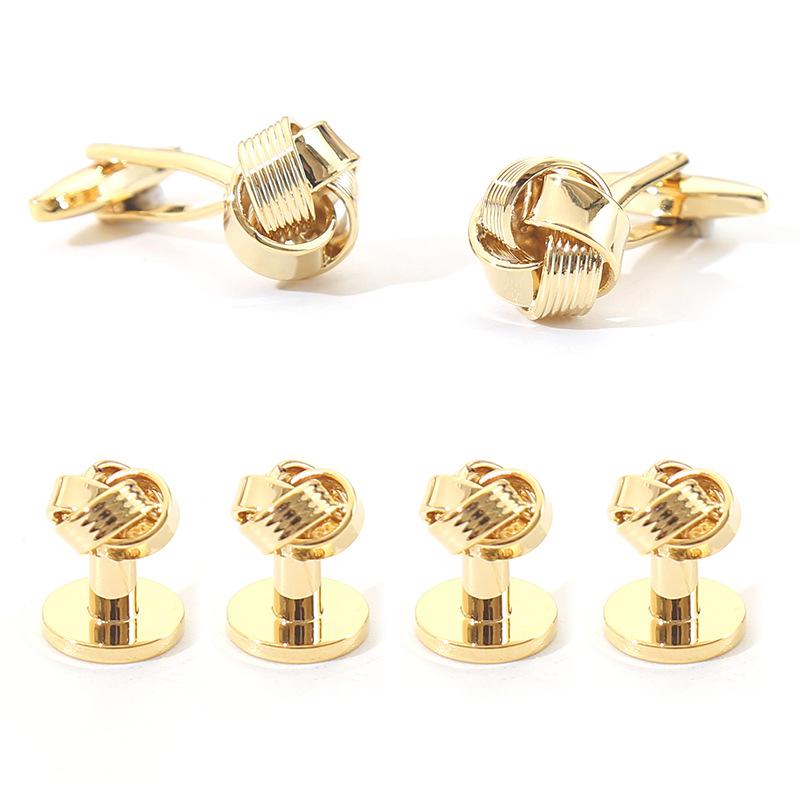 カフスボタン メンズ ライン 透かし彫り 幾何学模様 韓国風 銅製 電気メッキ加工 金属製 6点セット ゴールド ビジネス フォーマル 結婚式 スーツ パーティー(x2)
