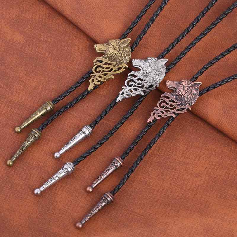 ネクタイ ユニセックス ウエスタン オオカミヘッド ボロタイ レトロ ヴィンテージ メタル レザー チョーカー カジュアル フォーマル パーティー アクセサリー ファッション小物 青銅色 シルバー 赤銅色(x2)