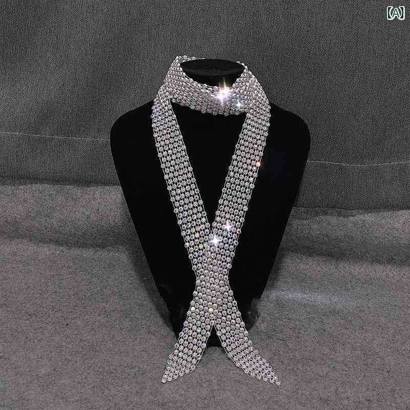 ネクタイ レディース スリム ナロータイ ラインストーン キラキラ ロング おしゃれ 白 黒 カラフル マスク 巾着袋 セット パーティー ダンス ステージ 衣装