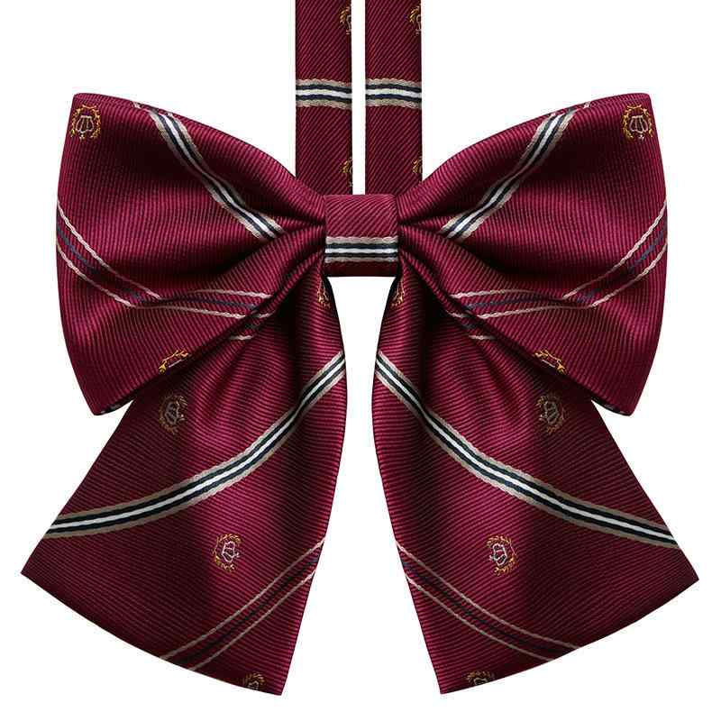 リボンタイ レディース ワンタッチ クラウン ワインレッド 韓国風 JK 制服 スクール 学生服 ボウタイ 女性用 テール付き エレガント フォーマル(x2)