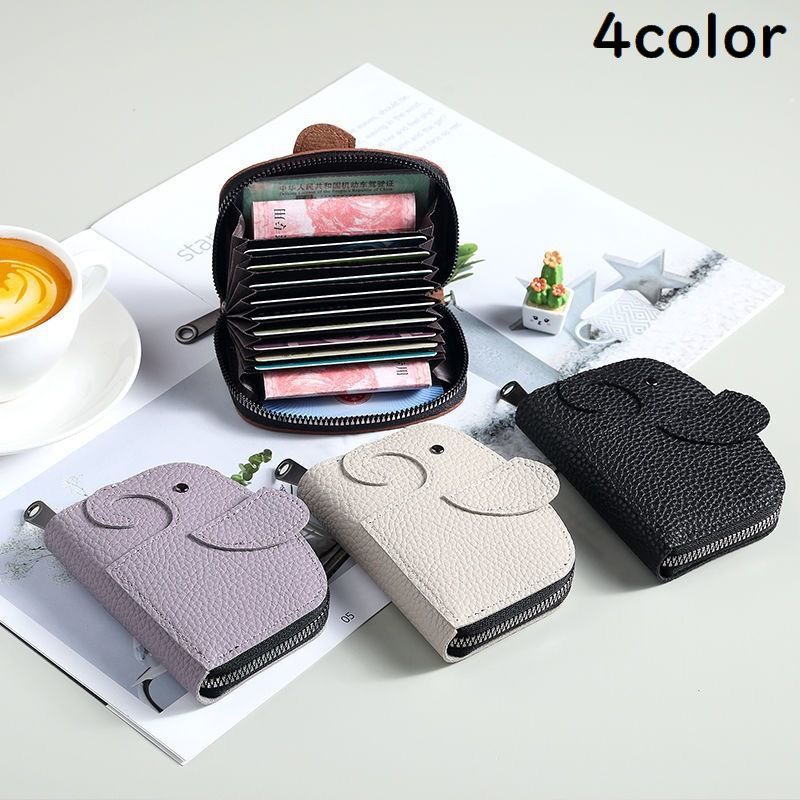 送料無料 カードケース ミニ財布 レディース PUレザー じゃばら 大容量 RFID スキミング防止 磁気防止 ゾウ 象 可愛い 小銭入れ