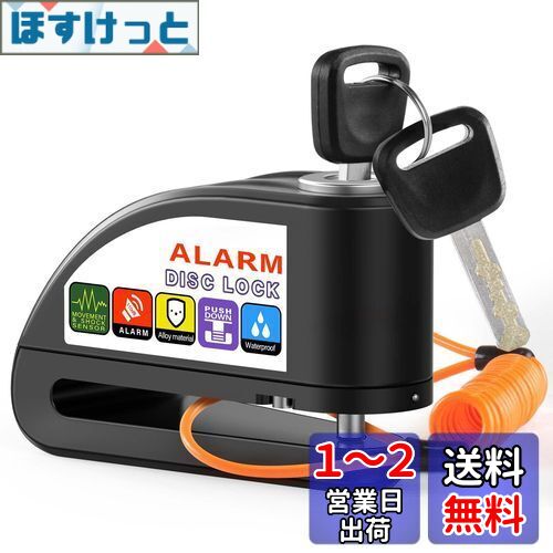 商品情報商品の説明主な仕様 ?【アラーム開閉可能】 最新自由にアラームON/OFFできる機能のを搭載します。鍵芯を4分の3の位置まで押して手放し、もう一度押すとロックされ、ミュート機能を直接実現します。どんなに振っても音は鳴りません。時計回りに押すと開き、ロックが解除されます。振動が加えられたり、傾きが変わったりといった具合に、バイクに異常が認められた時に大音量110dBのアラームを鳴らして警告します。バイクを持ち上げて移動しようとした際に威力を発揮するのはもちろん、いたずら防止にも一役買ってくれます。自由に開閉不可のアラームロックと比べ、風の衝撃やカバー接触によるアラームの誤作動を防ぎできて、近所迷惑にならなくて安心です。br?【堅牢で耐久性】 極太のφ14mm鍵芯を採用して耐切断性・耐摩耗・耐久性を備えた、高品質な金属で作られたバイクブレーキロックです。生活防水設計により雨の日でも使える点や、硬質合金のボディのため壊れにくい点も特徴的、圧倒的な強度を実現して大切な愛車を守ります。また、リマインダーワイヤーが付属してい、ワイヤーの片方をハンドルなどへ引っ掛けることで、ディスクロックの外し忘れが防げます。専用のポーチが付いているので持ち運びの際に便利です。br?【超長期連続待受】電源にアルカリ乾電池(LR44)6個を採用して、使い方にもよりますが6〜12ヶ月程度利用することが可能です。コンビニやスーパーで容易に入手できるため、ツーリングなど旅先で重宝します。勿論、内蔵の電池も交換できます。付属の六角レンチで底部のネジ4本を緩め、カバーを外して電池交換が可能です。【IP66防水・防塵】IP66等級の防塵・防水性能を搭載して、ロックカバーとロック本体は密閉空間であり、水が入りにくく、電池と回路基板が損傷しにくい。雨がかかりやすい場所で駐車する機会の多い方におすすめします。br?【適用範囲】商品本体サイズ:長さ9.5x幅4x高さ7(cm)。重量が約380gほどで、収納ケースが付いているので持ち運びにも便利です。【付属品】バイクディスクロック*1、鍵*2、説明書 【適用範囲】ディスク厚が7mm以下、ディスクの放熱穴の直径が7mm以上あれば取付け可能です。ディスクの穴径もよく確認したうえで購入してみてください。バイク・ミニバイク・自転車・電動自転車・マウンテンバイク・オートバイ、スクーター、オフロード車、ロードバイクなど幅広く対応できます。br?【安心の品質】本製品はご購入日から1年します。他のにも何か不明があればいつでもお気軽にお問い合わせください。万が一不備、品質に問題があった場合は【注文履歴】?【出品者に連絡】?【質問する】より、ご連絡ください。心を込めて対応させていただきます!●ご購入する前にぜひサイズをご確認ください。詳細は下の【商品の説明】部分をご覧ください。