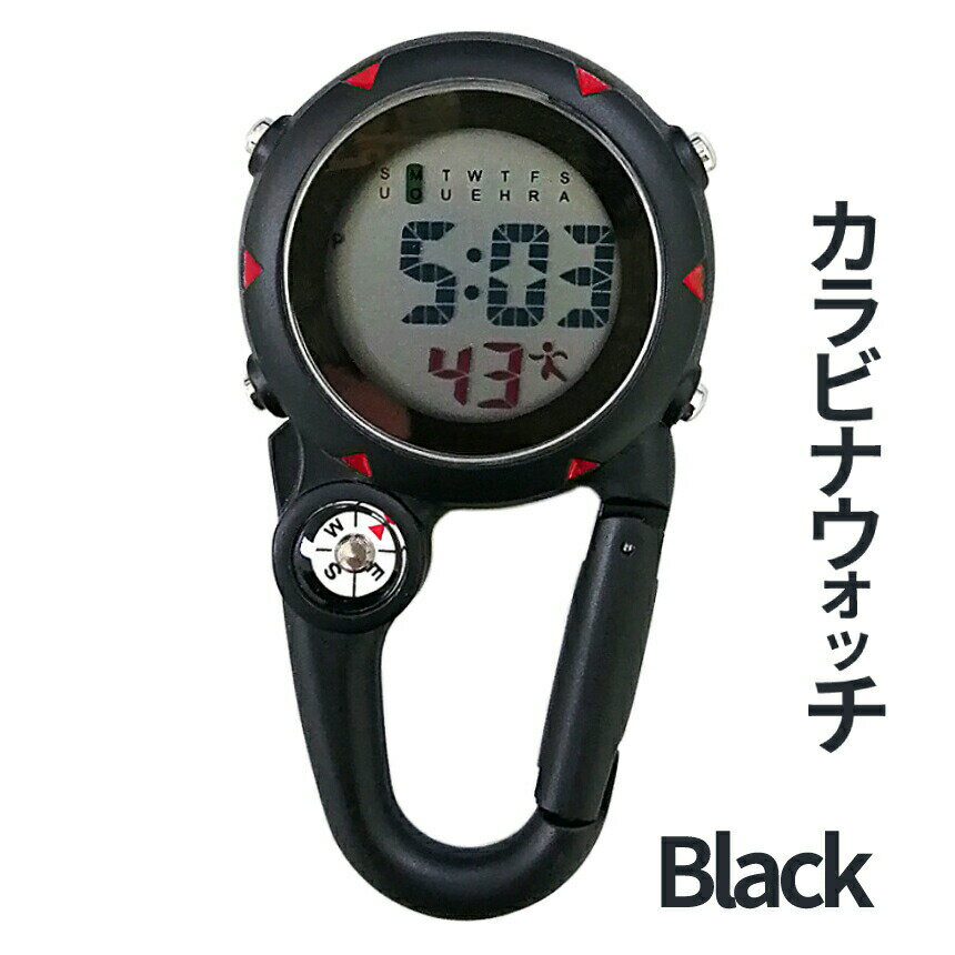 [当店限定★全品ポイント5倍] カラビナ デジタル ウォッチ 多機能 時計 防水 アラーム 曜日 マット ブラック 懐中時計 ナースウォッチ カバン バッグ リュック ベルト バック ライト RABIWATCH 送料無料
