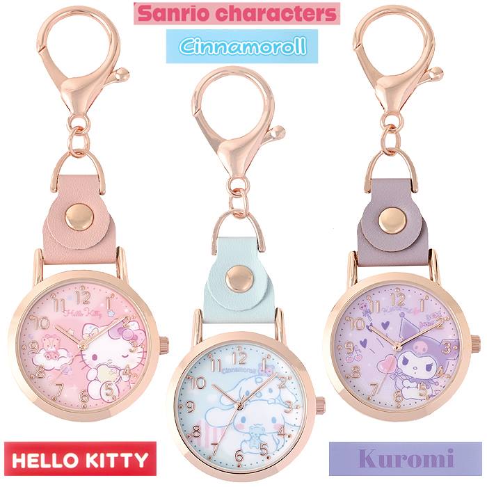 サンリオ キャラクター グッズ 時計 キーチェーン ハングウォッチ SNR003 ハローキティ シナモロール クロミ 懐中時計 おしゃれ バッグチャーム 携帯時計 メンズ レディース キッズ 便利 バック取手 ベルト通し バックループ