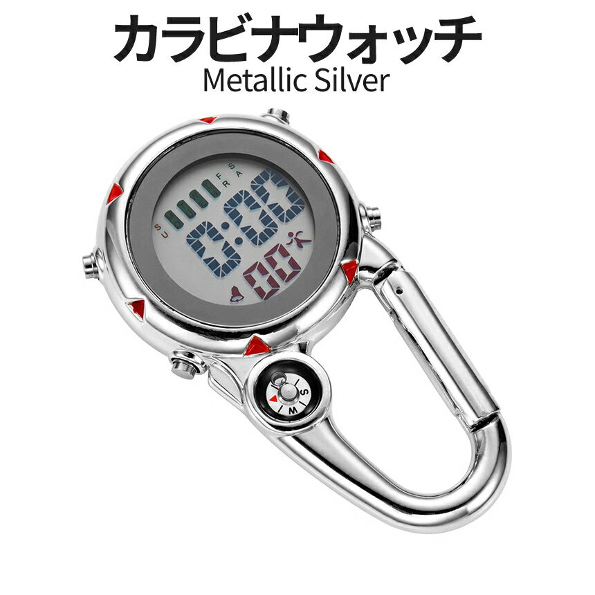【当店限定!全品ポイント3倍】 カラビナウォッチ シルバー デジタル 大きい文字 時計 ナースウォッチ カラビナ アウトドアウォッチ デジタルウォッチ 方位磁針 夜間発光 懐中時計 アラーム 時間 日付 RABIWATCH-SV 10OF 送料無料 CM