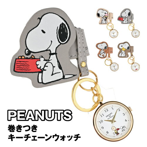 送料無料 ピーナッツ/スヌーピー 巻きつきキーチェーンウォッチ KC PNT039 / ベージュ グレー コーラルレッド ブラウン バンド カバン持ち手 リュックの肩紐に 2段階調節 キーリング付き デイリーユース かわいい 通勤 通学