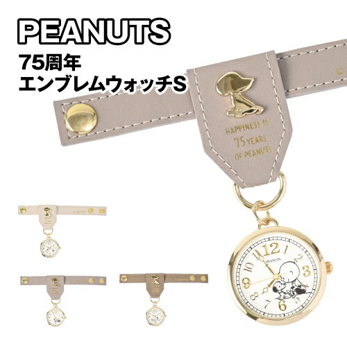送料無料 ピーナッツ/スヌーピー 75周年エンブレムウォッチS PNT047 / ベージュ グレー ブラウン 巻きつき バンド カバン持ち手 リュックの肩紐に 2段階調節 キーリング付き デイリーユース かわいい 通勤 通学