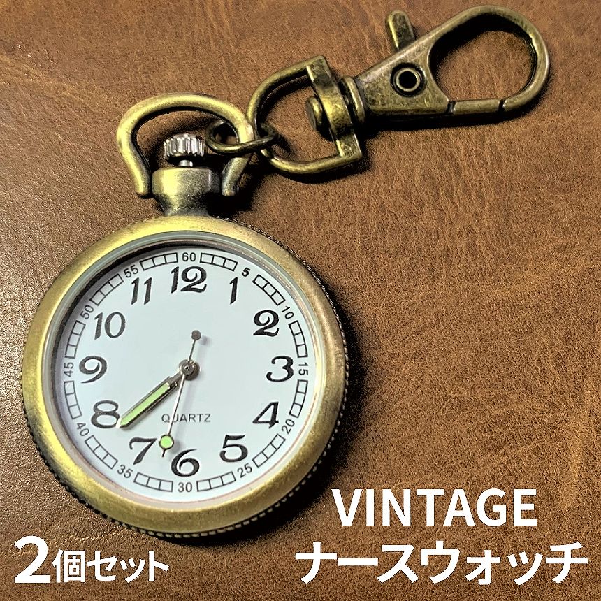 [当店限定★全品ポイント5倍] ナース ウォッチ 2個 蓄光 懐中 時計 キーホルダー アンティーク調 ナスカン シンプル リュック バッグ ポケット ランドセル ベルト ループ レトロ 2-NASWATCH TOKU 送料無料