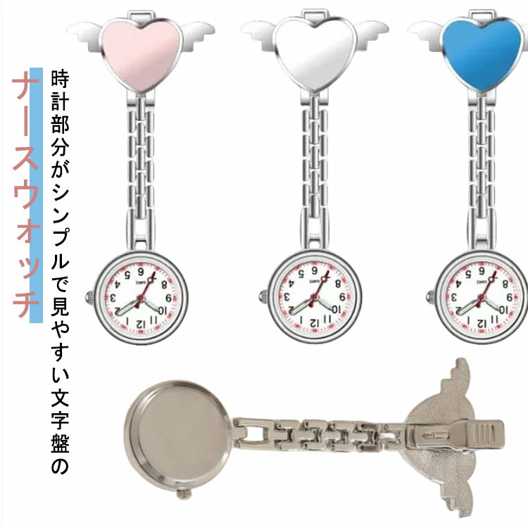 ポケットウォッチ 天使ハート ナースウォッチ 時計 懐中時計 逆さ文字盤 クリップ式 夜光効果 かわいい レディース ナース用 学生用 ウォッチ 軽量 おしゃれ コンパクト