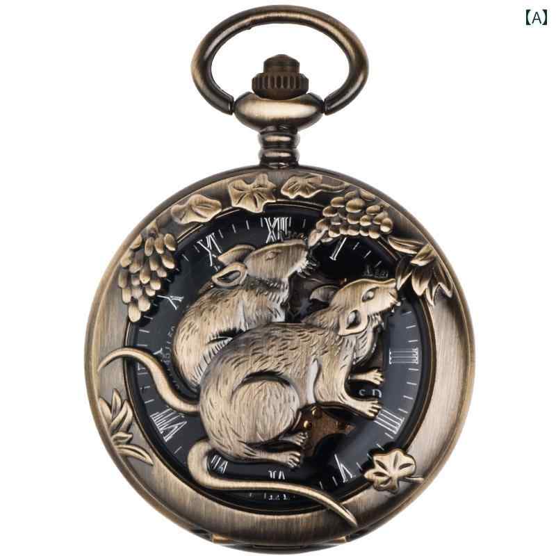 懐中時計 十二支 自動 機械式 レトロ フリップ ネックレス ペンダント ウォッチ メンズ レディース 学生 丑年 ギフト ウォッチ