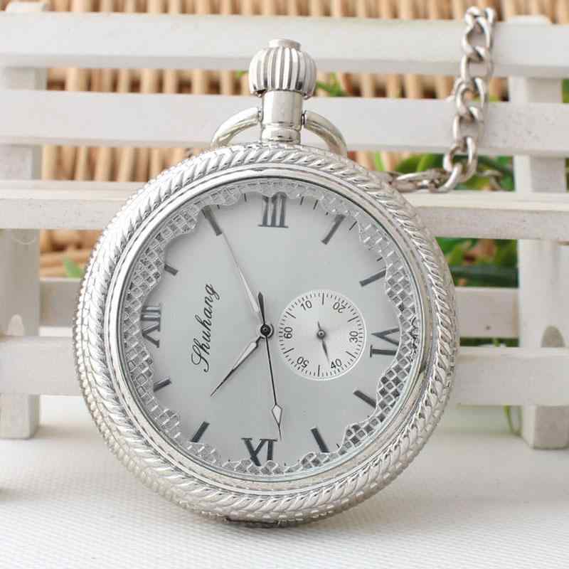 懐中時計 吊り時計 本格 機械式 時計 シルバーホワイト 虫眼鏡 ラウンド レディース シンプル アクセサリー ホリデーギフト