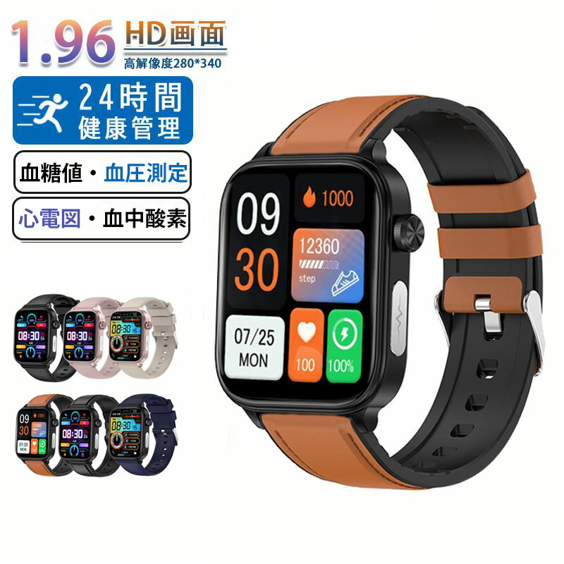 工場直営 品質保証 スマートウォッチ ECG 心電図測定 血圧測定 血糖測定 血中酸素 心拍数 Bluetooth 5.0 睡眠検測 日本製センサー 血液成分 音楽制御 歩数計 1.96インチ 大画面 通話機能 着信通知 IP68レベル 日本語対応 健康管理 天気予報 プレゼント iPhone/Android対応