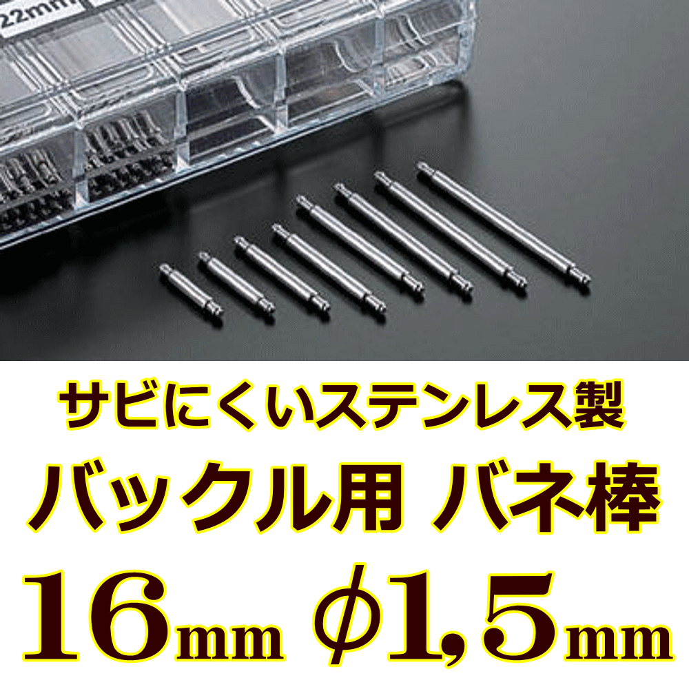 ウォッチ用 腕時計用 バックル用バネ棒販売 2本セット サビにくいステンレス製のバネ棒 取付幅 バックル幅:16mm:φ1,5mm用 ウォッチ用パーツ 腕時計用パーツ メタルバンド用 バンド留め金具 美錠用 交換パーツ 交換部品