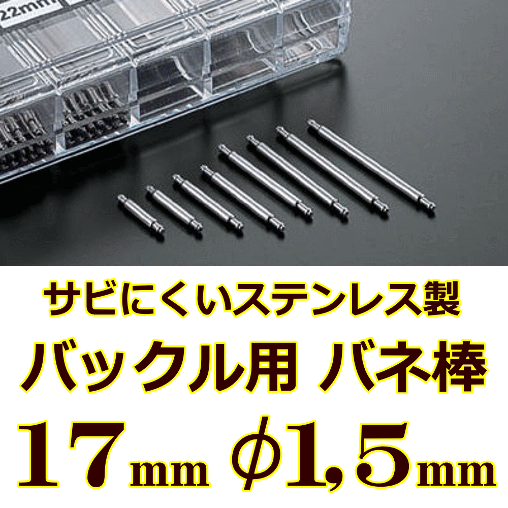 ウォッチ用 腕時計用 バックル用バネ棒販売 2本セット サビにくいステンレス製のバネ棒 取付幅 バックル幅:17mm:φ1,5mm用 ウォッチ用パーツ 腕時計用パーツ メタルバンド用 バンド留め金具 美錠用 交換パーツ 交換部品