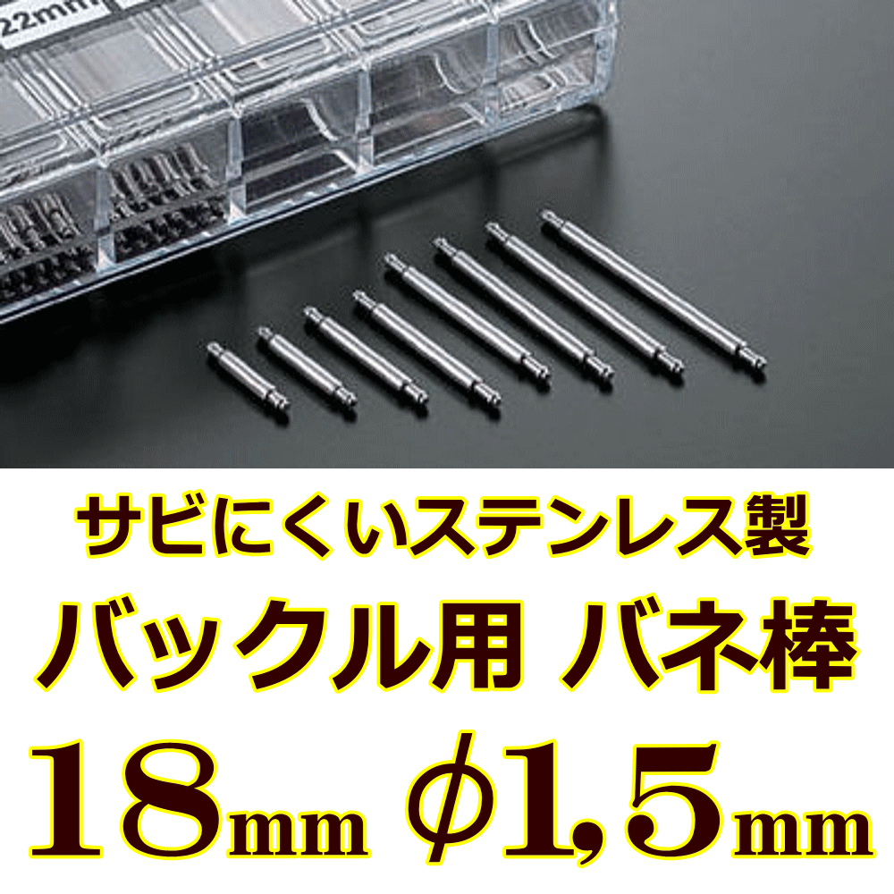 ウォッチ用 腕時計用 バックル用バネ棒販売 2本セット サビにくいステンレス製のバネ棒 取付幅 バックル幅:18mm:φ1,5mm用 ウォッチ用パーツ 腕時計用パーツ メタルバンド用 バンド留め金具 美錠用 交換パーツ 交換部品