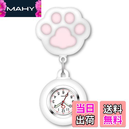 【送料無料】LIKENNY ナースウォッチ 懐中時計ク 時計 見やすい看護師医療所 かわいい クリップ バッジ ポケットウォッチ 男女兼用 ォーツ 伸び縮み可能 クリップ付き シンプルで防水 逆さ文字盤 猫の爪(白)