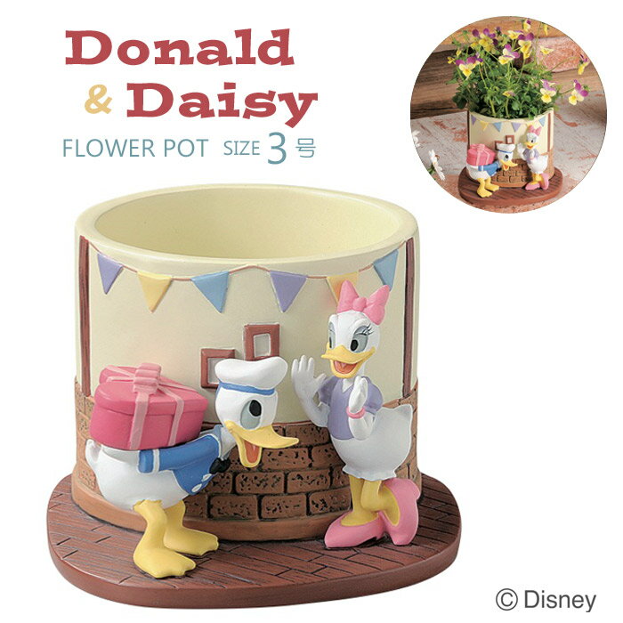 プランター 植木鉢 ディズニー パーティー ドナルドダックとデイジーダック 3号 内径9.5cm レジン ガーデニング 小物入れ 園芸用品