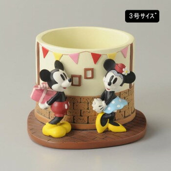 プランター 植木鉢 ディズニー パーティー ミッキーマウスとミニーマウス 3号 内径9.5cm レジン ガーデニング 小物入れ 園芸用品