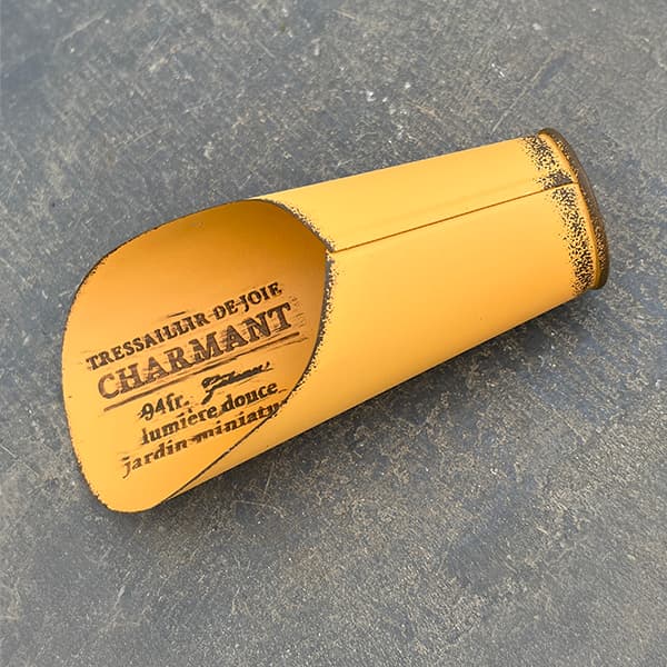 土すくい(土入れ):シャーマンスコップOR/オレンジ(HSCH07OR)寄せ植えなどに便利な土入れ。お洒落なデザインです。サイズ(約)幅φ80mm、高さ70/170mm、材質ブリキ※写真はイメージです。※植物、撮影資材などは含まれておりません。