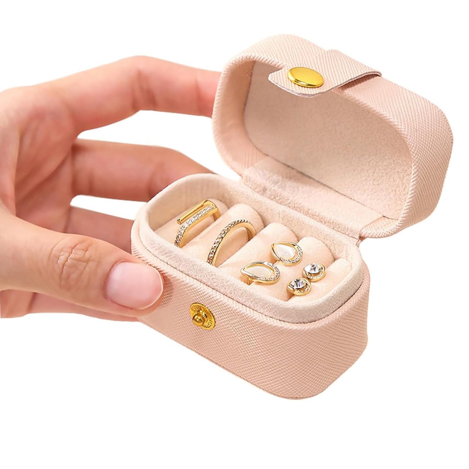 Phyxiul アクセサリーケース 指輪ボックス 携帯用 小箱 コンパクト 可愛い 旅行用 ジュエリーケース ジュエリー収納 リング イヤリングボックス 旅行 出張 (ピンク)