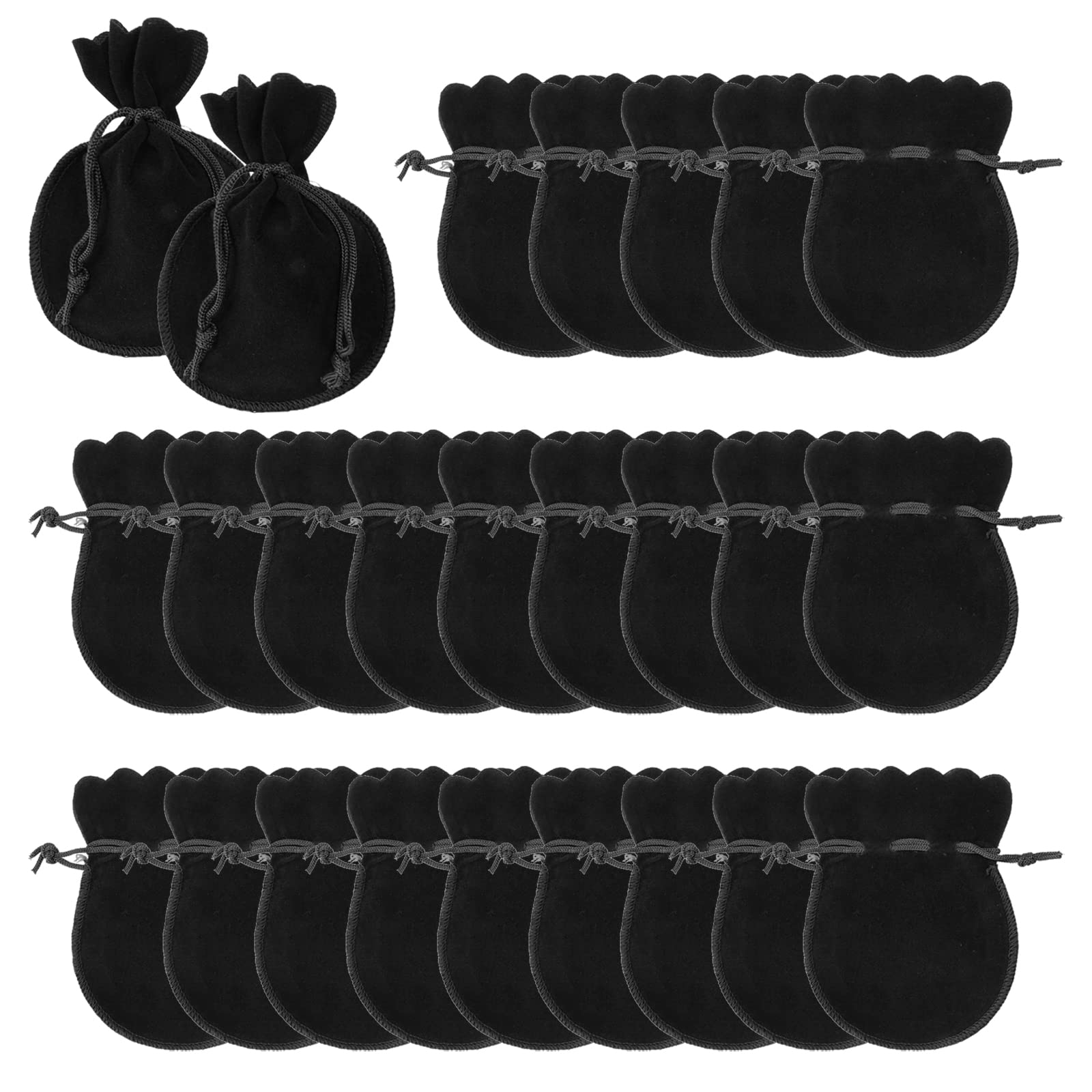 【送料無料】siawadeky ジュエリーポーチ 50枚セット アクセサリー 収納 巾着袋 ベロア調 ギフトバッグ ジュエリー袋 小物入れ アクセサリー保存 ネックレス/ブレスレット/腕時計/化粧品などを収納可能 小型 収納袋 9*12cm (黒色)