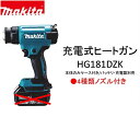 マキタ 18V充電式ヒートガン HG181DZK [本体のみ]+ケース付 バッテリ・充電器別売 ・電源:直流18V ・本機寸法(長さ×幅×高さ):173×79×255mm ・質量:1.3kg ※1 ・標準付属品:平面ノズル・ガラス保護ノズル・曲面ノズル・丸ノズル ※1 BL1860B装着時。
