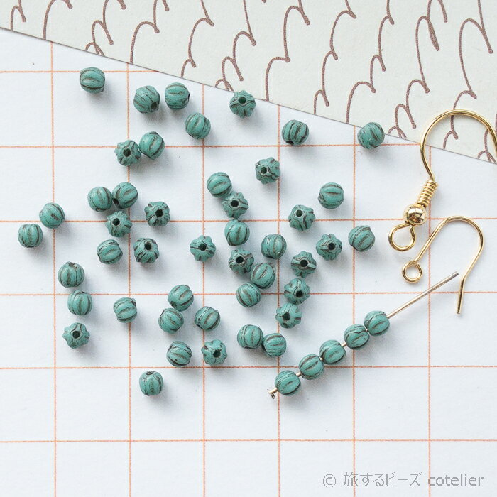 チェコビーズ 【3mm 45個】ターコイズ メロン パンプキン ラウンド ガラス ビーズ 手芸 専門店 R025