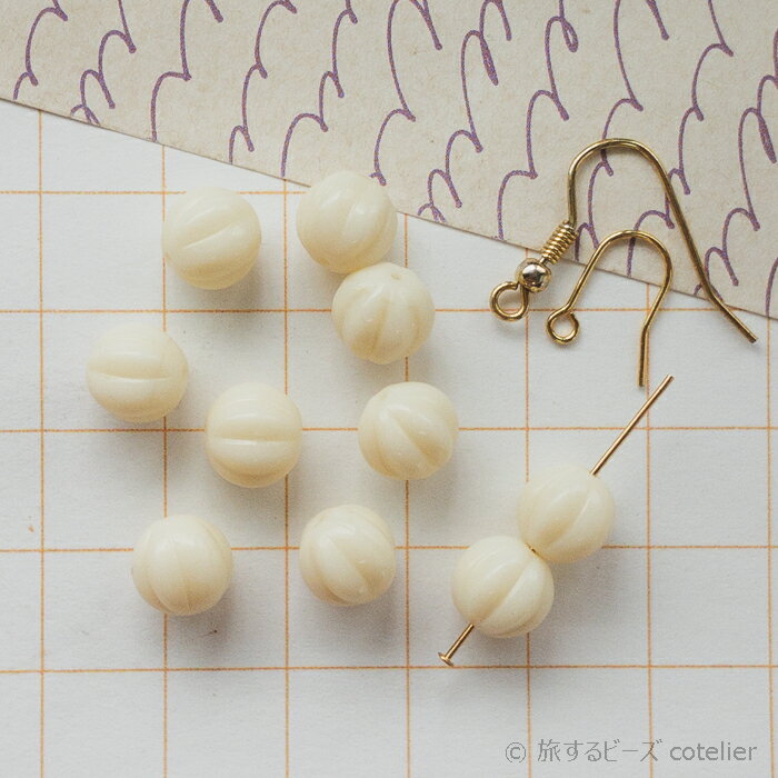 チェコビーズ 【8mm 10個】 クリーム ホワイト メロン パンプキン ラウンド ガラス ビーズ 手芸 専門店 C1229