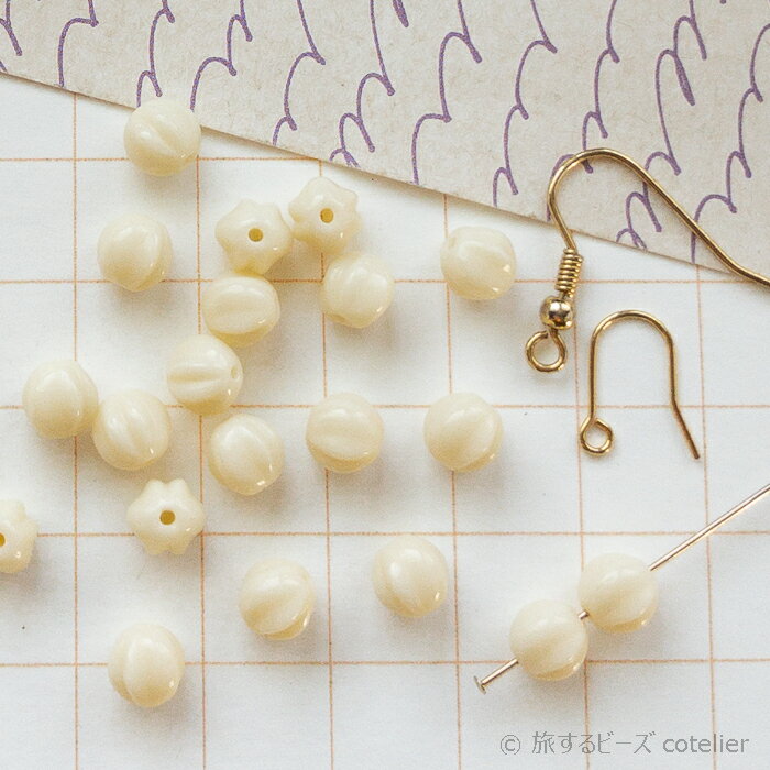チェコビーズ 【6mm 18個】 クリームベージュ メロン パンプキン ガラス ビーズ 輸入ビーズ 手芸 専門店 C1347