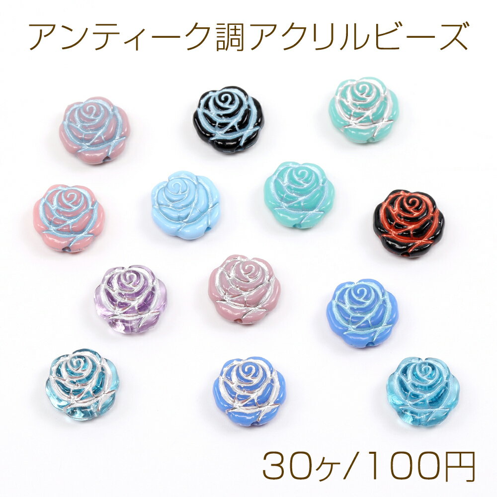アンティーク調アクリルビーズ バラ 12.5mm(30ヶ)