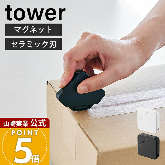( マグネットセラミックダンボールカッター タワー ) tower 山崎実業 公式 オンライン 通販 カッター 段ボール コンパクト ジルコニア 刃こぼれ しにくい 耐久性 収納 浮かせる 磁石 シンプル おしゃれ ホワイト ブラック 白 黒 1351 1352