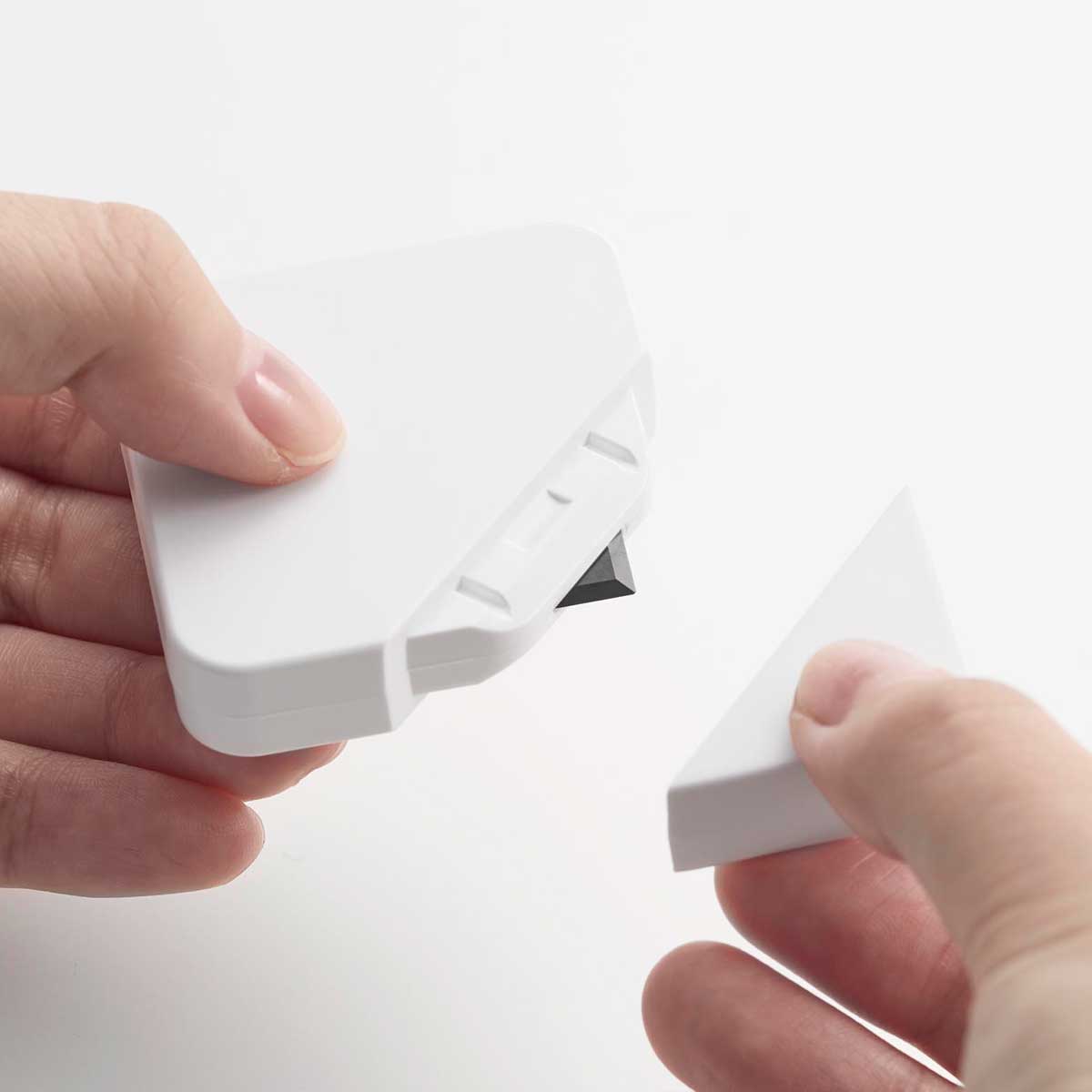 ダンボールの開梱が簡単に!セラミック刃使用のダンボールカッター。しっかりとテープで留められた開けにくいダンボールも、簡単に開けられる便利なダンボールカッターです。金属より強くて硬い、耐久性に優れたジルコニア製のセラミック刃を採用。刃は僅か0.5cmと短く、ダンボールの中身を傷つけにくいのも嬉しいポイントです。テープを剥がさずに開梱できるので、余計なゴミも出ません。カッターはマグネット付き。玄関扉や冷蔵庫など、マグネットが付く壁面に付けて浮かせて収納すれば、使いたい時にサッと使えて便利。また、お手持ちのストラップを通して引っ掛け収納ができる穴もあいているので、マグネットが付かない場所でも浮かせて収納できます。ストラップは付属いたしません。※商品詳細を全て選択すると「商品仕様」が表示されます
