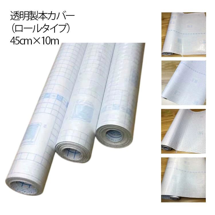 製本カバー ロール 透明 フィルム 450mm×10m ブックカバー 図書館 本 クリア 防水 汚れ防止 シール 補修 保護フィルム 雑誌 教科書 マス目付 裏面方眼 貼りやすい 整理 保管 おしゃれ 送料無料