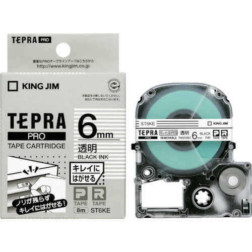 KING JIM (純正)「テプラ」PROテープ 6mm キレイにはがせるラベル/透明ラベル/黒文字 長さ8m ST6KE