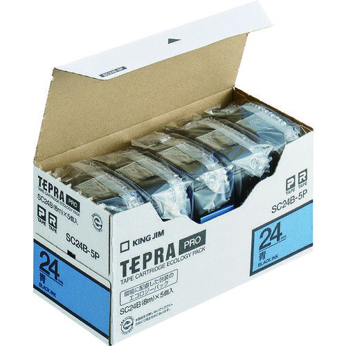 KING JIM (純正)「テプラ」PROテープ 24mm エコパック(5個入り)/青ラベル/黒文字 長さ8m SC24B-5P