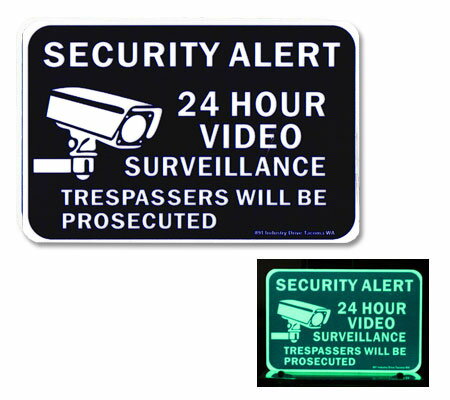 セキュリティ ダミー サインプレート 防犯カメラ アメリカン おしゃれ 壁 飾り 面白い ガレージ かっこいい ウォールデコ アメリカン雑貨 蓄光 両面テープ 24時間ビデオ監視中 【メール便OK】_SP-011-UNT
