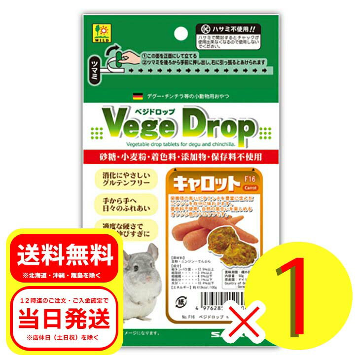 三晃商会 ベジドロップ キャロット 50g 小動物用おやつ デグー チンチラ 砂糖・小麦粉・着色料・添加物・保存料不使用 F16
