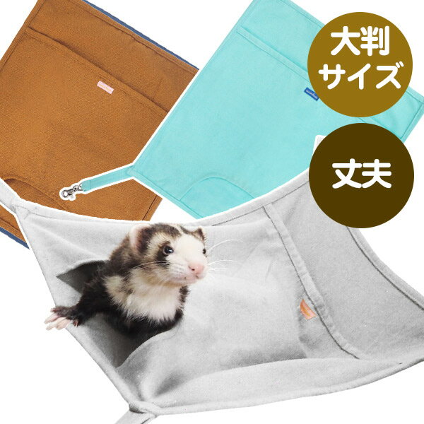 ・60×45cmの大型ハンモックです。多頭飼い用にオススメ! ・大型ナスカン&裏面補強で、とっても丈夫。 ・ポケットタイプですので、もぐっておやすみもOK。 ・取り付け用の金具付きで、届いたその日にすぐ吊るせます。 ■サイズ:約60×45cm ■素材:ポリエステル、コットン ※色、柄等は予告なく変更する場合がございます。予めご了承ください。 ■関連キーワードわいわいワイドハンモック(F1) フェレット ハンモック 寝袋オールシーズン 大きめ 大判 多頭飼い 迷彩 フェレットワールド