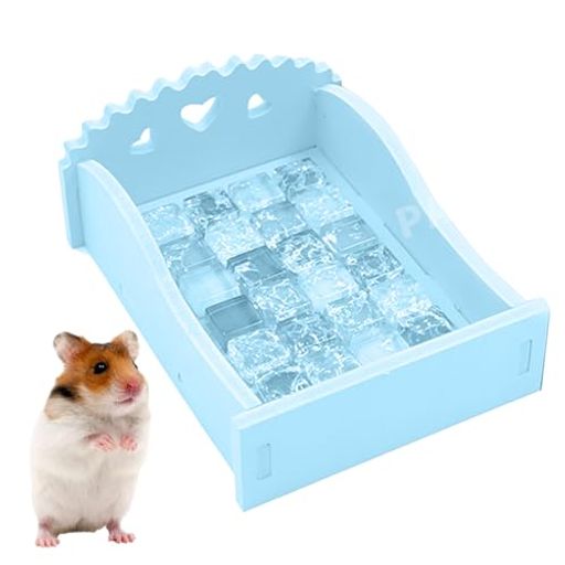 【送料無料】PAVIKE ハムスターベッド 涼感 ハムスター冷却ベッド 木製 ハムスター寝床 物理冷却 暑さ対策 小動物の隠れ家 クールマットが付 洗濯可能 オールシーズン対応 ハリネズミ ウサギ ネズミ ハムスター用品 約10x6.5cm(ブルー)