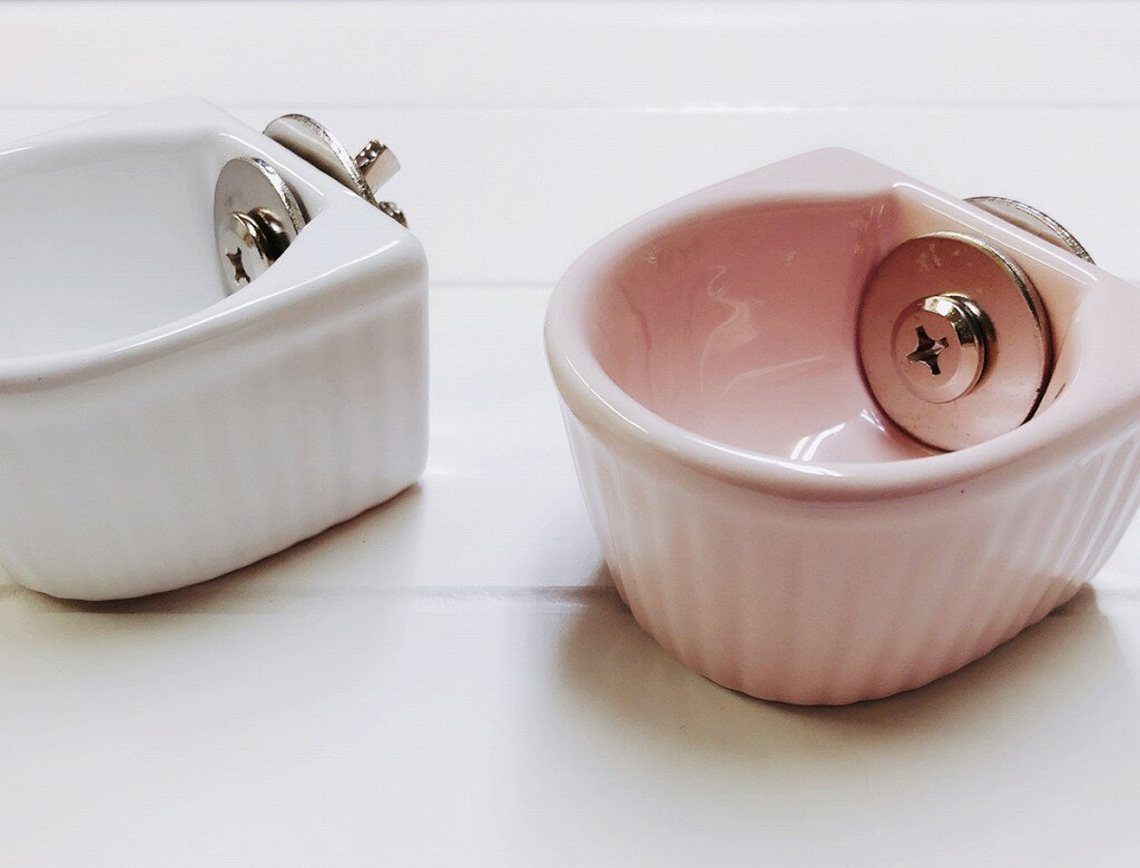 *えさ入れ(金具付)S*小動物用 うさぎ チンチラ デグー ハムスター モルモット モモンガ 小鳥 ペット 陶器 留め具付 転落防止 動きの多い小動物のためのえさ入れ、金具で固定することによりえさをこぼしにくくなります。陶器なので丸洗いでき、衛生面も安心安全です。 2