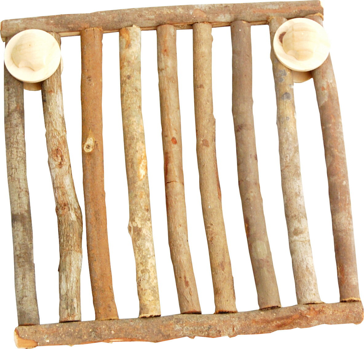 コンフォートケージの小窓にぴったり!スプリングのがじがじ防止に!!竹ピン使用のため安心。金属は使用していませんので安心。自然木そのままなので、かじり木として最適です。ウッドネジ一個付属。 【サイズ】 約100×100mm【原産国】ベトナム【販売元】川井 栃木県那須郡