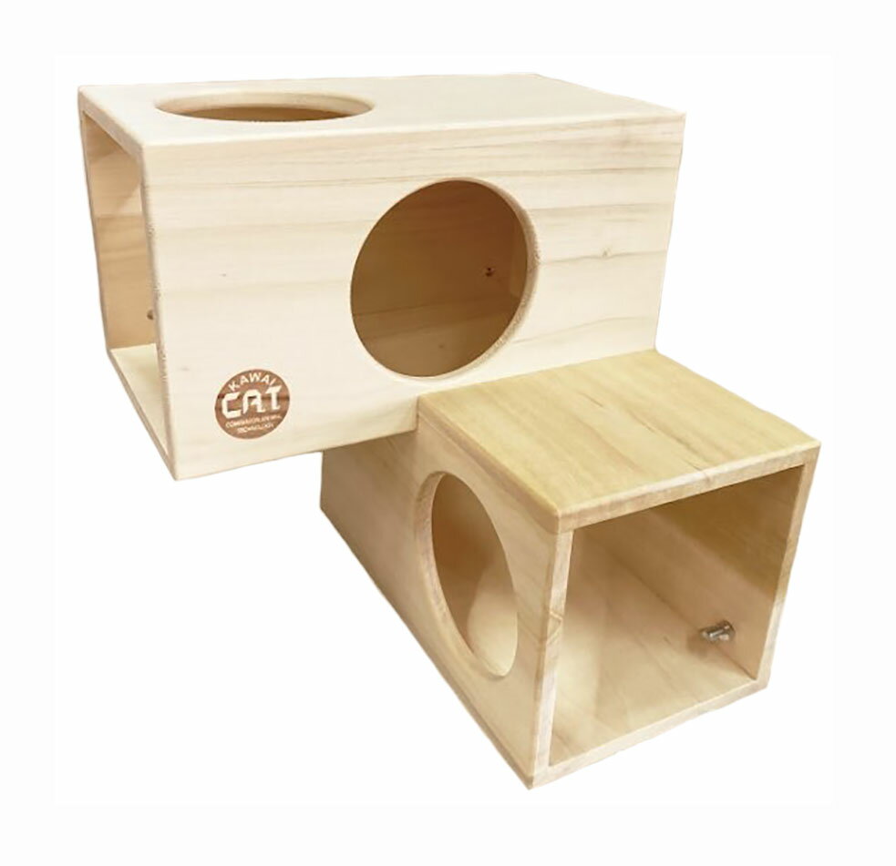 2階建てのリッチなハウス。内部がつながっていて自由度の高いレイアウトが楽しめます。丸い窓からチラっとかくれんぼするチンチラさんの姿がみられる他にはないハウスです。天然の広葉樹使用100%天然木・クギ不使用【サイズ】約W270×D270×H280mm【付属品】金属ねじ×4個付【販売元】川井 栃木県那須郡※天然木を使用しており色合いが商品ごとに異なりますが、安心してご使用いただけます。漂白をしていない為、天然由来の黄色や黒色などの色味がある場合が御座います。