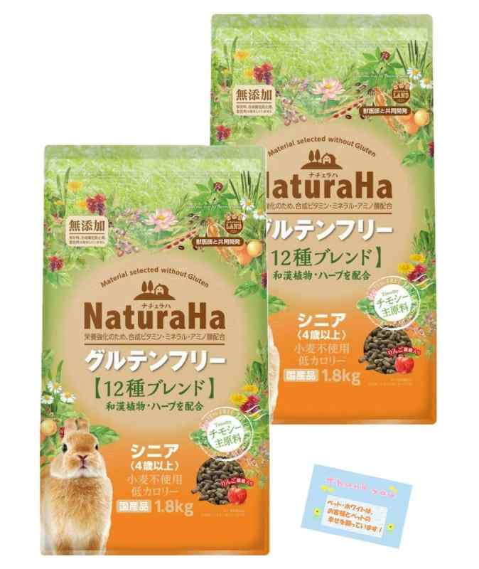 日本製 【うさぎ シニア用】ナチュラハ グルテンフリー 12種ブレンド ラビット チモシー 便臭軽減 グルテンフリー 低カロリー 4歳以上 お徳用 1.8kg 【2個セット】健康を考えたグルテンフリーのペレット: チモシー主原料で小麦不使用の低カロリーフード。和漢植物とハーブ配合: うさぎの食性と栄養バランスを考慮した10種の和漢植物と2種のハーブが配合されています。乳酸菌・オリゴ糖配合: 消化器官の健康維持に役立つ乳酸菌とオリゴ糖が配合されています。免疫力維持: 初乳の主成分ヌクレオチドが免疫力の維持に貢献します。発酵エキスで便臭軽減: 植物抽出発酵エキスが腸内の善玉菌を増やし、便臭を軽減します。こちらの商品はペット・ホワイトが販売します。スタッフ手作りのペット・ホワイトサンクスカードがセットになります。(ペット・ホワイトサンクスカードの付属がない場合は当店またはにご連絡ください)。