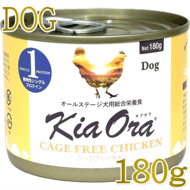NEW 最短賞味2028.9・キアオラ 犬 ドッグ缶ケージフリーチキン180g缶ドッグフード全年齢犬用 総合栄養食kia22187正規品
