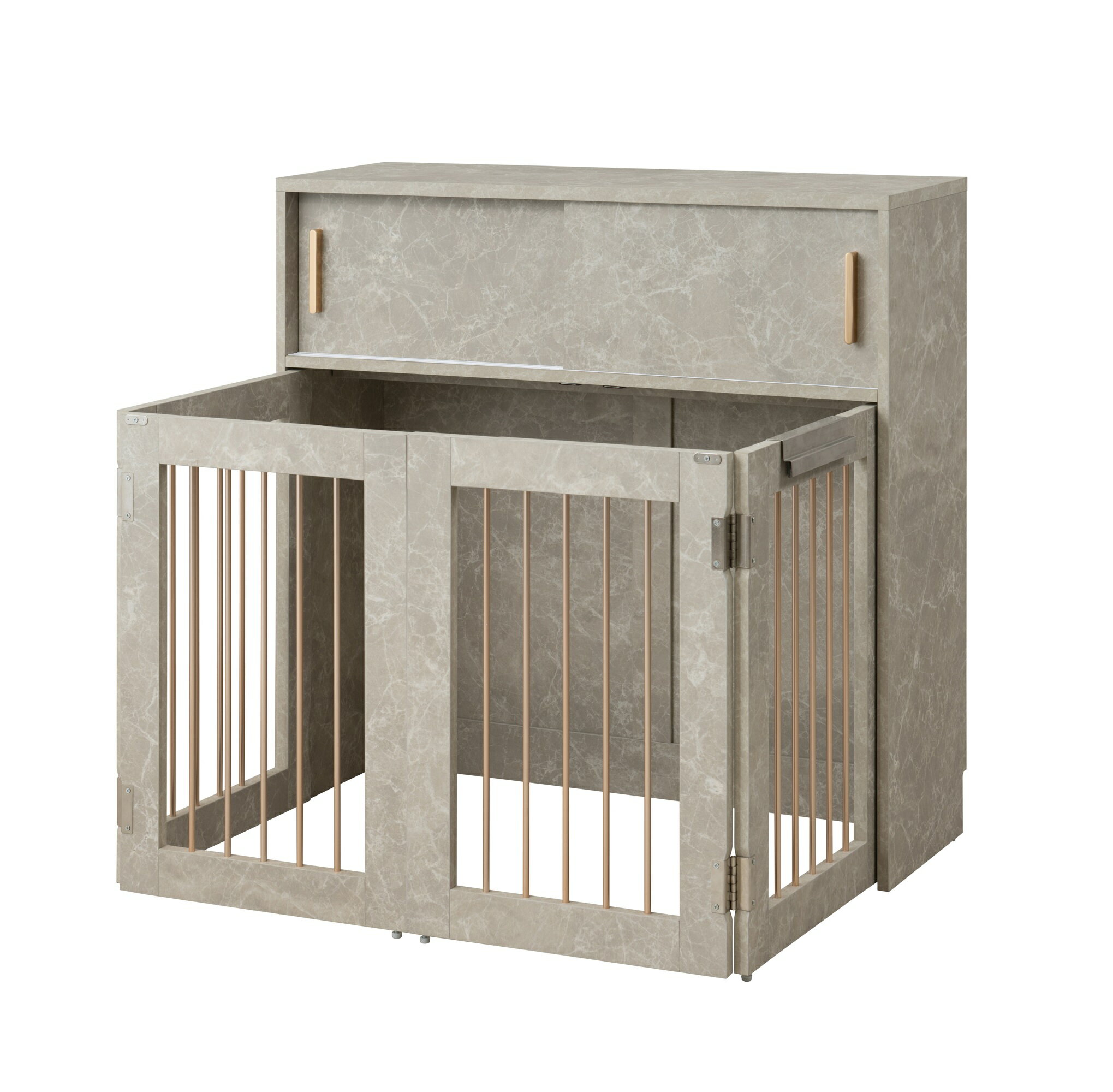 高級感溢れる、大理石柄とシャンパンゴールドの上品な組合わせの【JOLI】シリーズ 幅90cm 奥行40cm 収納付きスライド収納型ケージ ペットケージ ペットサークル 省スペース 小型犬 中型犬 室内サークル 背面化粧 犬 犬用品 犬小屋 ケージ フェミニン