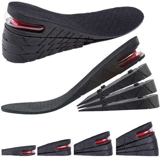 吸湿発散性 👟最大7.5cmアップ-1段目3cm、2段目4.5cm、3段目計6cm、4段目7.5cm.身長でお悩みの方にはぴったりと合っているインソールです。この4層構造なインソールは、ファッションで快適、身長がアップできる高さが自由に調整できます。高さは4段階で調整ができます!ちょっとだけ高くしたい場合でも気軽にお使い頂けます。 🥾カットして微調整できるから安心-サイズは22.5cm~27.0cmのフリーサイズで。しかもお好みの大きさに合わせてカットでき、ジャストフィットするよう調整できるのが特徴です。当製品をカットする際は、中敷の裏にあるサイズ線を参考にしてみて下さい。最初は実際のサイズより少し大きめにカットし、一度ご自身の靴のサイズに合わてみて、その後少しづつカットしながら調節するとうまくいきます。 👢驚きのクッション性能-人体工学に基づいた設計と柔らかい材質で作成した中敷きで、疲れを減り、楽になります。赤い部分はエアーキャップというクッション材です。